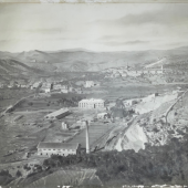 Just després de formalitzar la donació es va procedir a encarregar la restauració de la imatge més antiga de les tres. Es tracta d’una fotografia aèria de la vila de Súria des de la zona de la mina on es pot apreciar el procés constructiu de les seves instal·lacions. És composta per una fotografia positiva B/N DOP sobre paper, de 61x81 cm., la qual s’havia adherit a una tela que estava clavada amb gavarrots a un bastidor de fusta.
